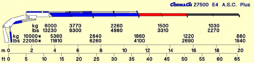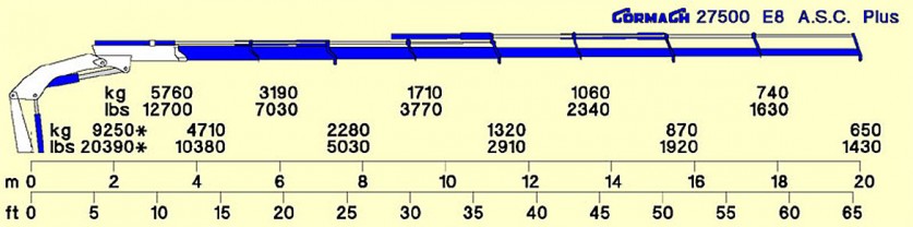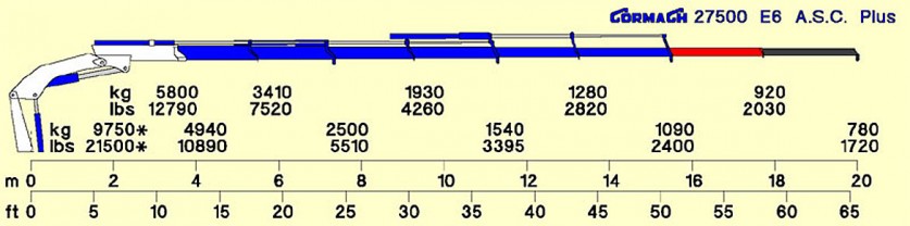 [trow][tcol]Boom length with manual extensions[/tcol][tcol]20000 (mm)[/tcol][tcol]65’7” (in)[/tcol][/trow]