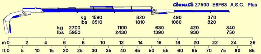 [trow][tcol]Lifting capacity[/tcol][tcol]2700 (kg)[/tcol][tcol]5950(lbs)[/tcol][/trow]